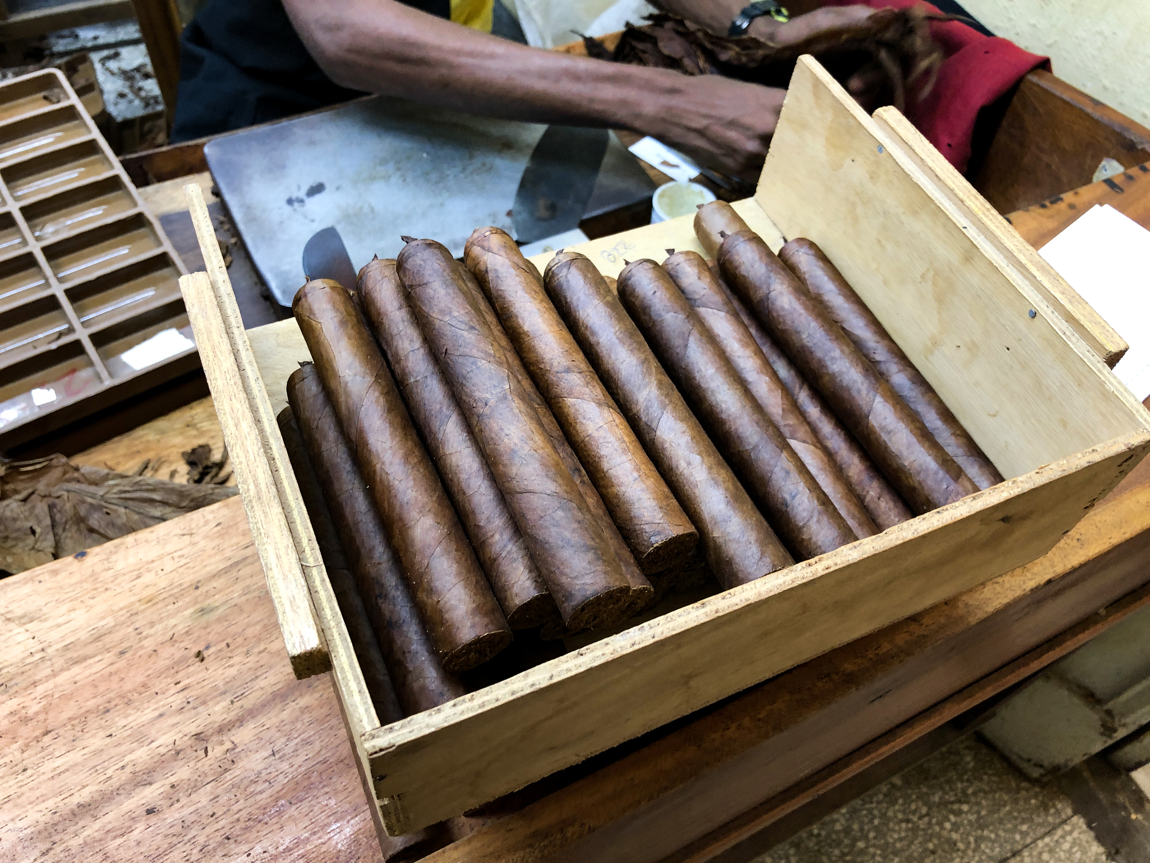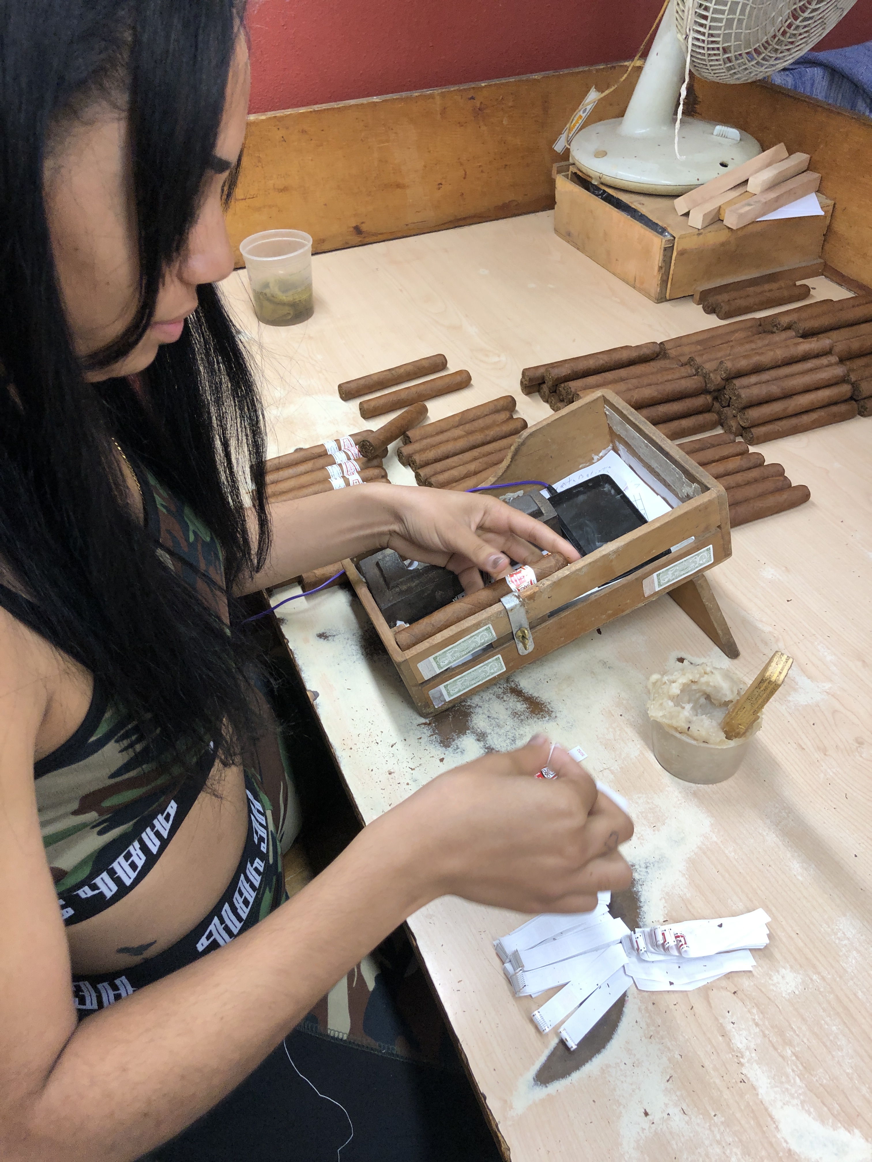 Immediately we checked out the tobacco storage room and smelling and holding the rare Medio Tiempo leaves used solely to produce Behike was the highlight of the tour, followed closely by holding and smelling a freshly rolled Talisman at the torcedor’s desk.